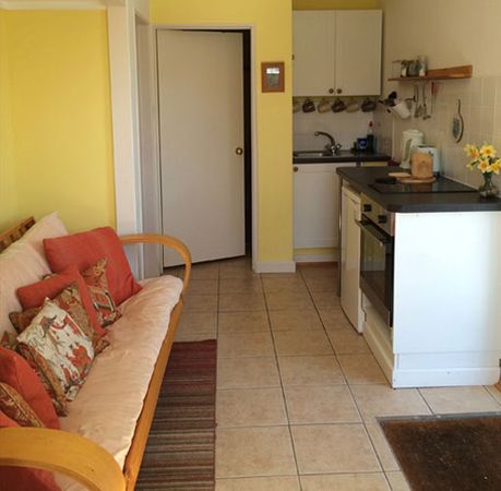 Light & airy open plan sitting room with a 4’ comfy sofa bed and dining area makes for a relaxing place to sit, read or even work as the apartment has wifi connection.